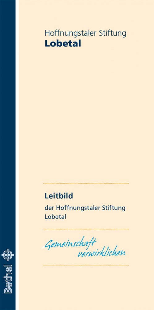 An der Entwicklung dieses Leitbildes waren von Anfang an die Mitarbeiterinnen und Mitarbeiter der Stiftung beteiligt - unabhängig von ihrer Funktion, Konfession und Weltanschauung. Das Leitbild ist als verbindende und gültige Absprache über Werte und Zielvorstellungen innerhalb der Hoffnungstaler Stiftung Lobetal zu verstehen. Es bildet die Vorgabe für Teilkonzepte in den einzelnen Arbeitsfeldern und Bereichen und gilt gleichermaßen allen Mitarbeitenden als Orientierung.