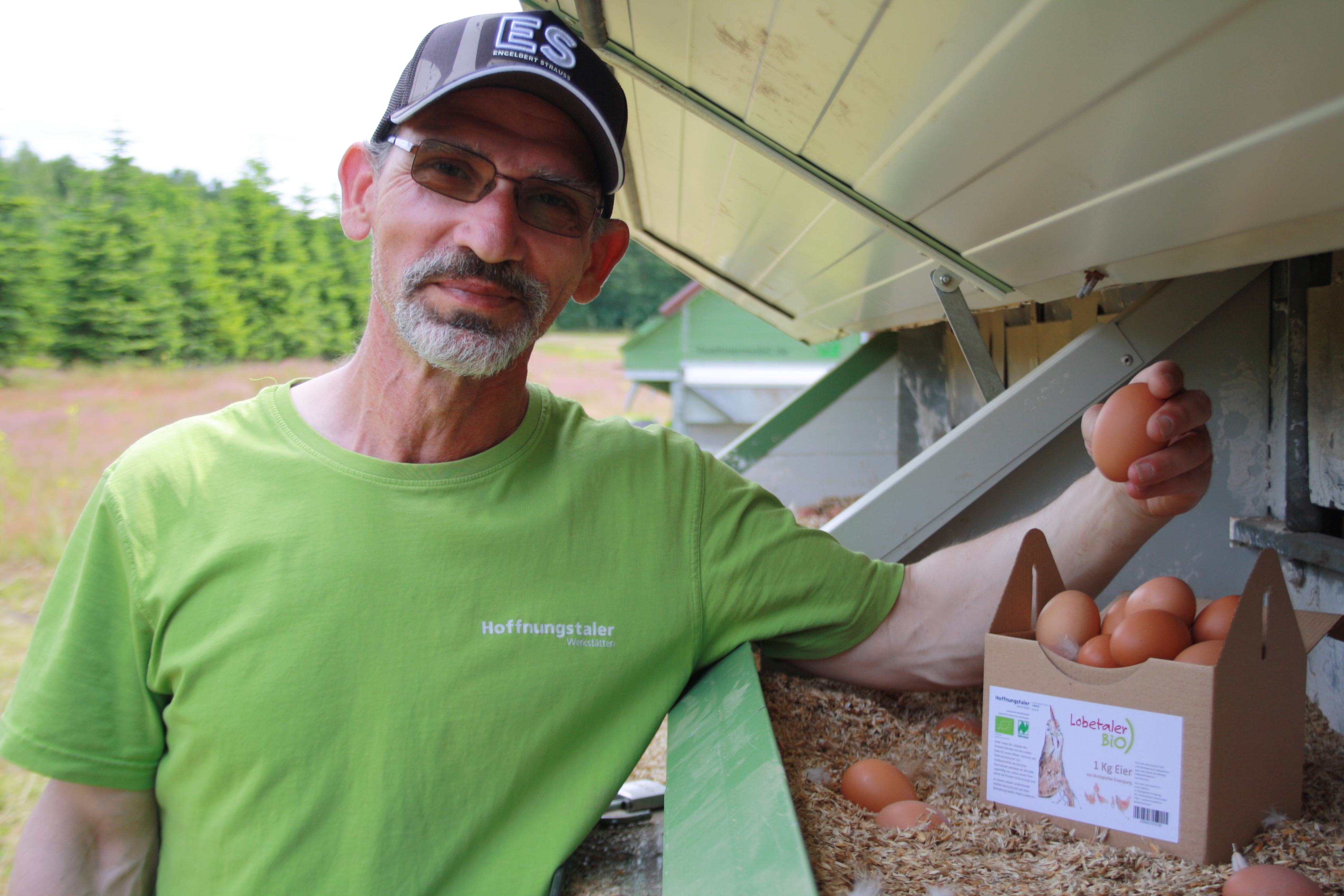 Nun bieten die Hoffnungstaler Werkstätten die Bio-Eier auch im 1-Kilogramm-Karton an. Zunächst gab es Zweifel, ob die neue Verpackung bei den Kunden ankommen würde. Die Idee dazu hatte Katja Ziebath, die sich um die Bio-Hühner kümmert. Ziel war, auch die kleineren Eier besser zu vermarkten. Wenn Hühner mit etwa 19 bis 20 Wochen beginnen, Eier zu legen, sind die ersten oft sehr klein und werden als S-Eier bezeichnet. Diese kleinen Eier sind in Geschmack und Qualität den größeren Eiern ebenbürtig, haben es aber oft schwerer im Verkauf, da die meisten Rezepte M- oder L-Eier voraussetzen.
